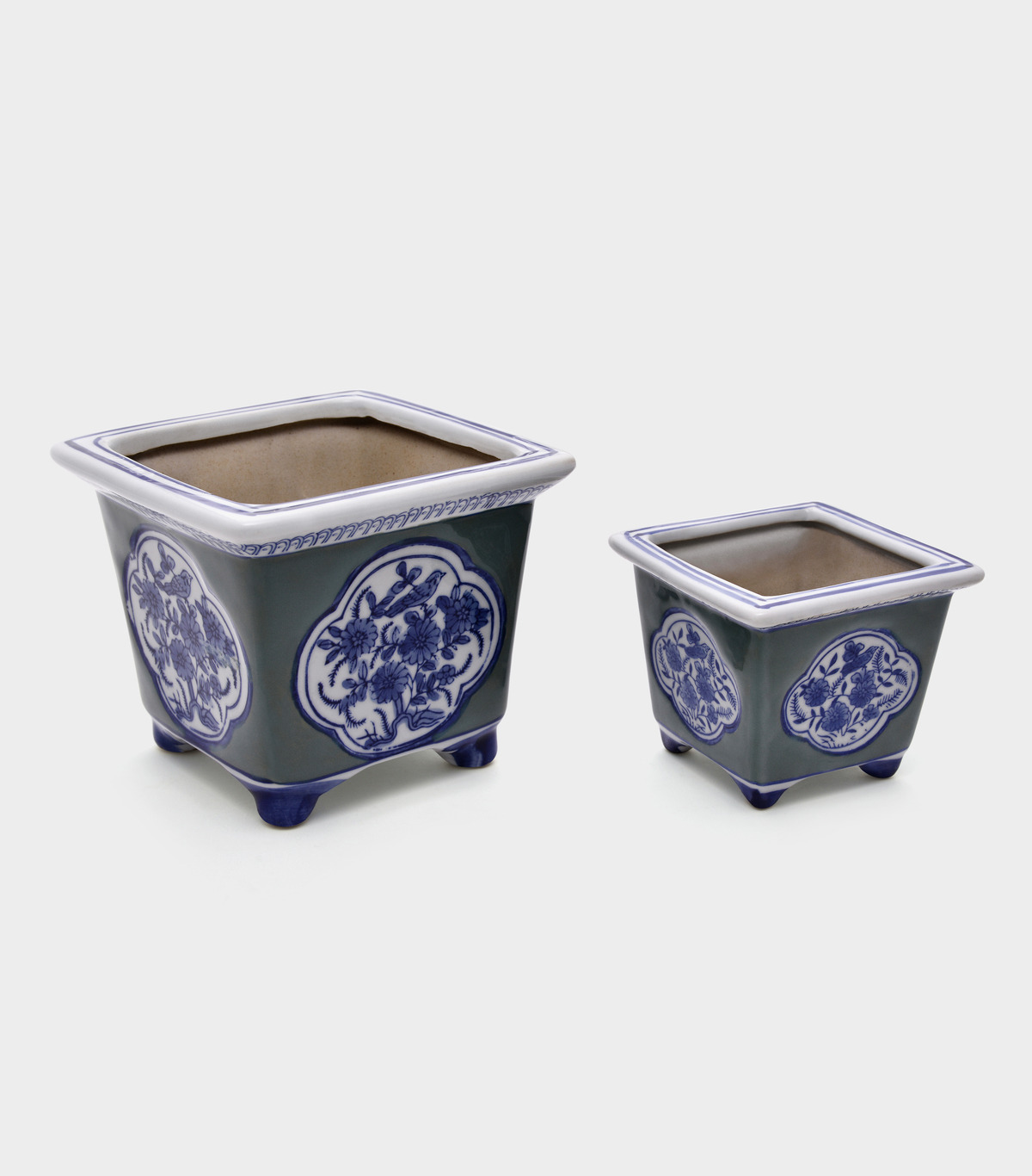 CACHEPOT CERÂMICA CELADON DETALHE AZUL