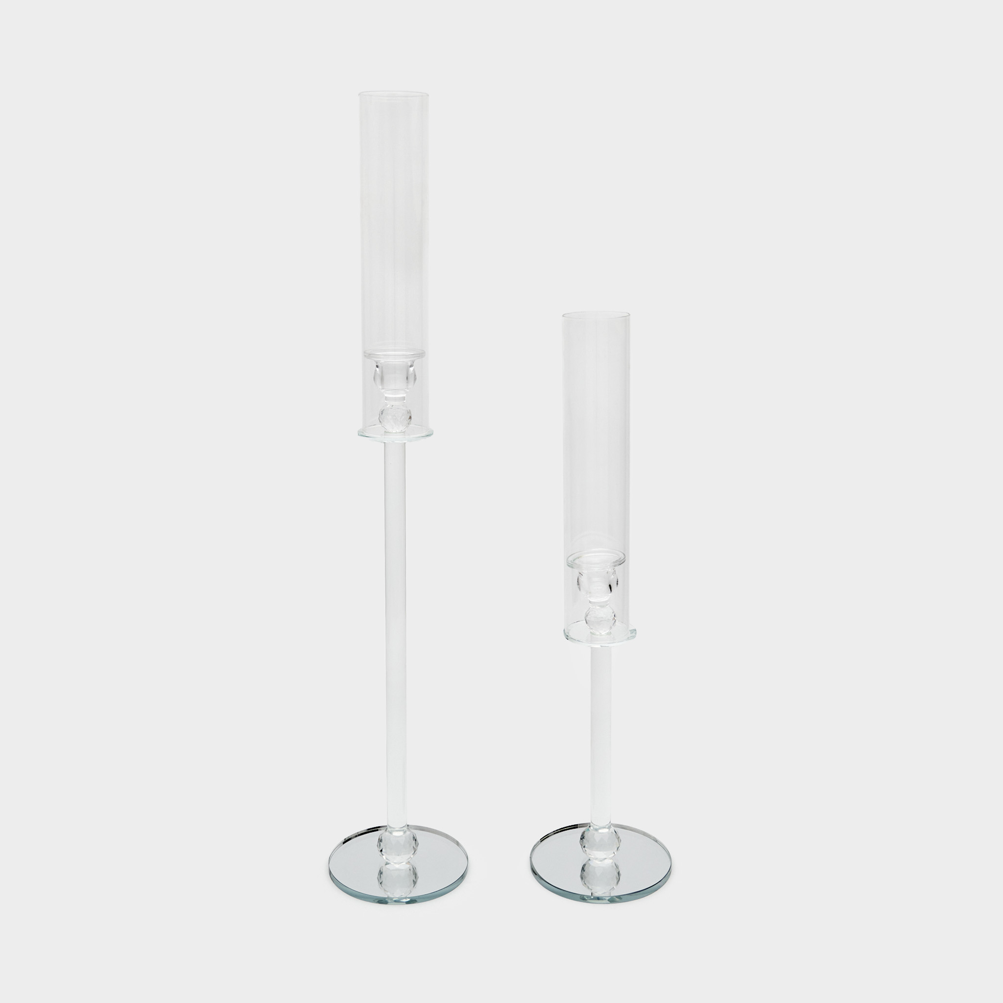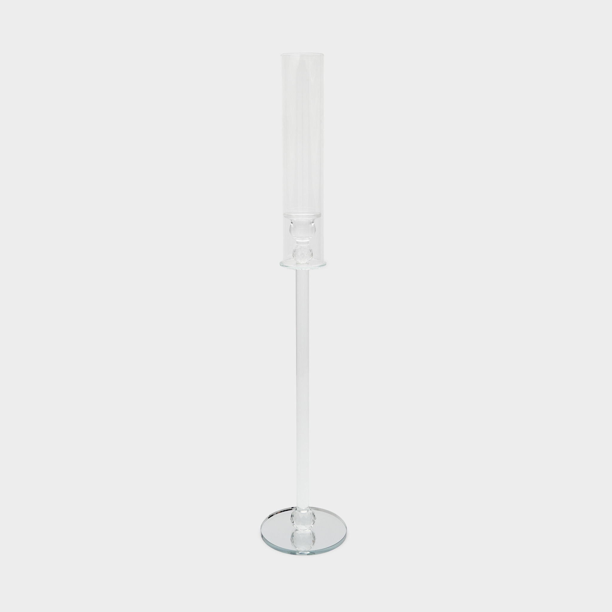 CASTIÇAL CILINDRO VIDRO ALTO BASE ESPELHO BOLA CRISTAL