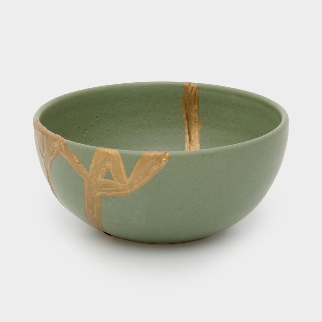 CUMBUCA CERÂMICA CELADON E DOURADA M