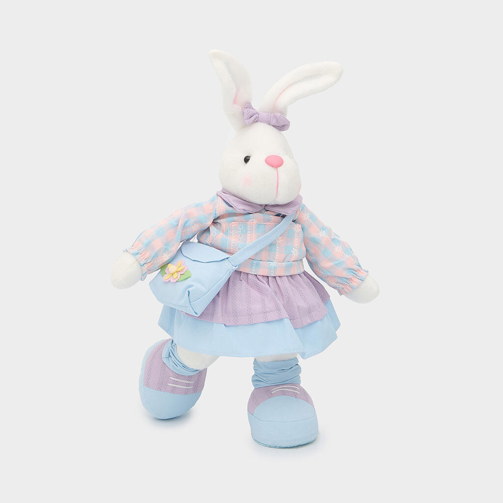 ESCULTURA COELHO LILAS AZUL MENINA EM PÉ