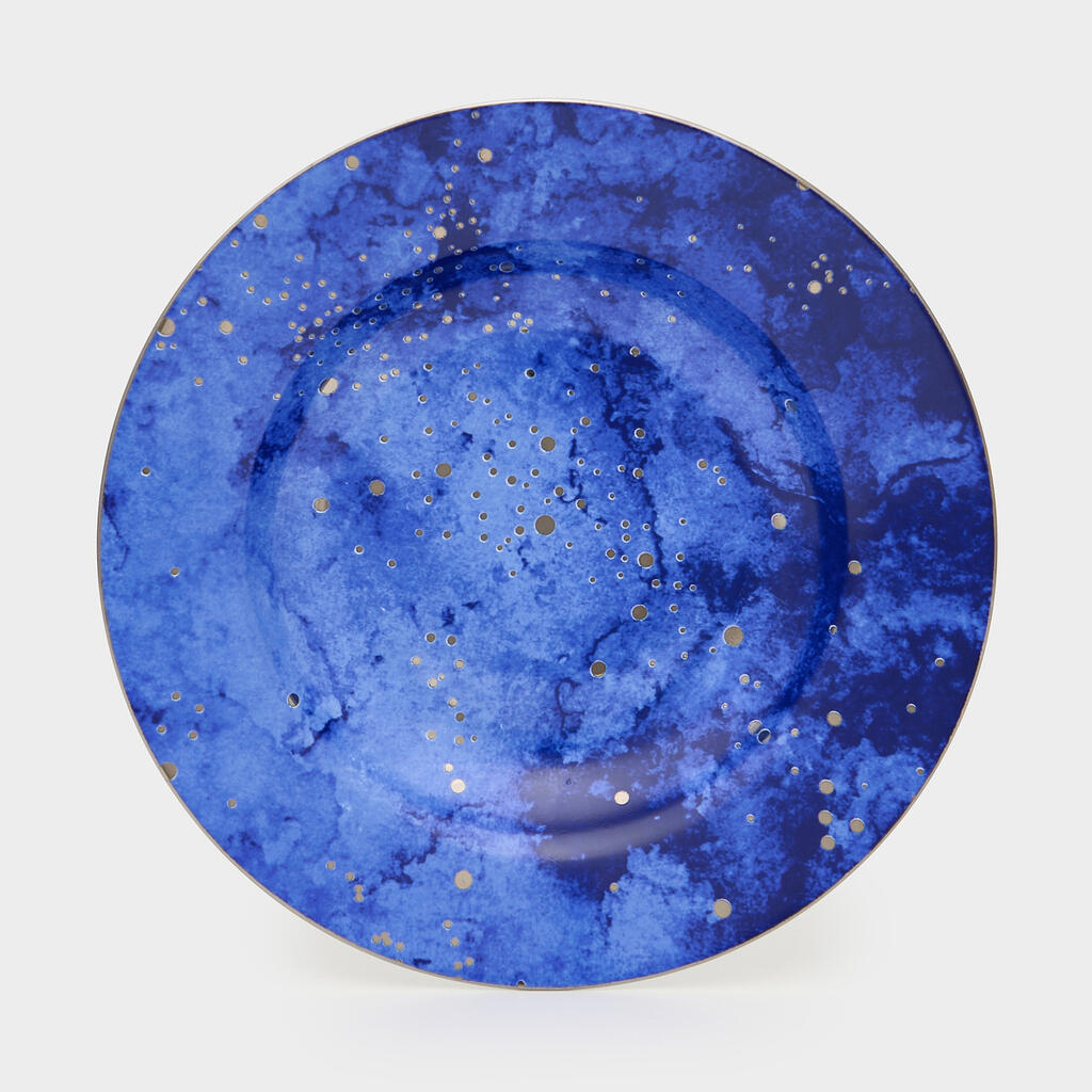 PRATO FUNDO AZUL PONTOS PRATA
