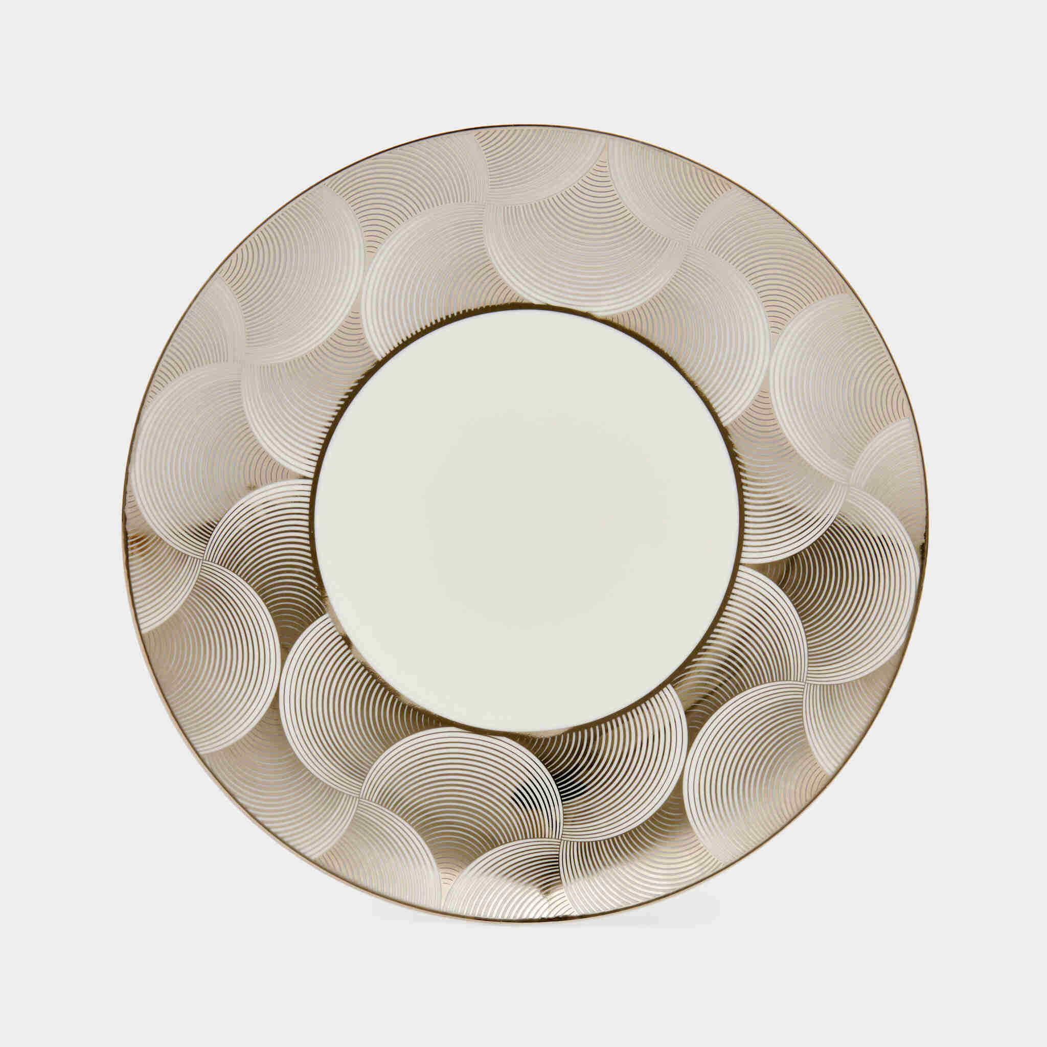 PRATO MESA BORDAS ONDAS BRANCO E PRATA