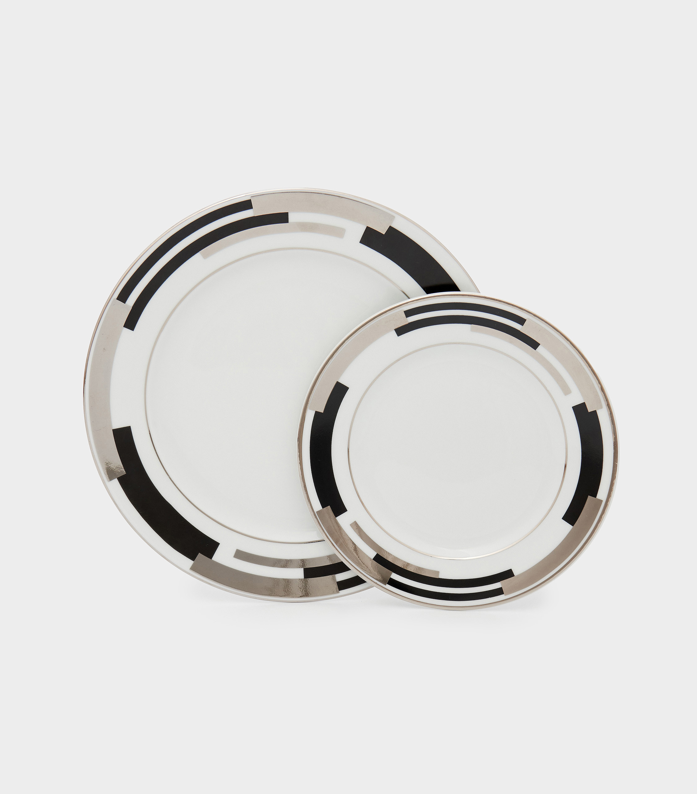 PRATO SOBREMESA PRETA E PRATA BORDA ABSTRATA